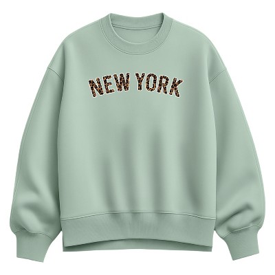 Women's Instant Message Iced Coffee Would Fix Me Oversized Fleece Crew Sweatshirt - Seafoam - Medium