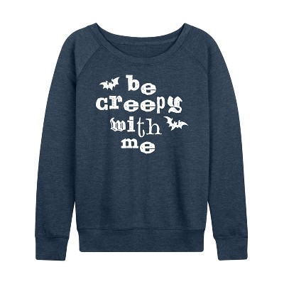 Women's Instant Message Im A Freaking Delight Lightweight French Terry Wide Neck Long Sleeve Graphic Shirt - Heather Indigo - Medium