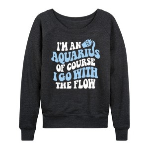 Women's Instant Message Im An Aquarius Lightweight French Terry Wide Neck Long Sleeve Graphic Shirt - Heather Charcoal - Small