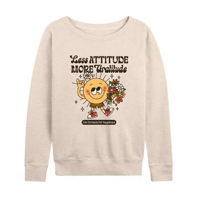 Women's Instant Message Inspiration Lightweight French Terry Wide Neck Long Sleeve Graphic Shirt - Heather Charcoal - Small