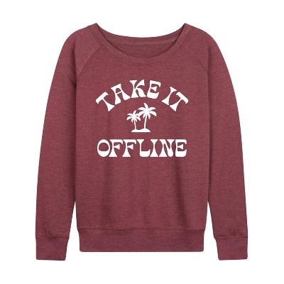 Women's Instant Message Judging Silently White Ink Lightweight French Terry Wide Neck Long Sleeve Graphic Shirt - Heather Maroon - Small