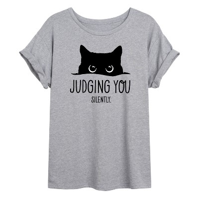 Instant Message - Judging You Silently Cat - Womens Oversized T-shirt - Instant Message is an online specialty fashion retailer for everything from funny to inspiring printed apparel. We offer a range of garments from long sleeve and relaxed fit t-shirts, to lightweight french-terry long sleeve shirts, hoodies and graphic print pullovers. Our products feature fun and trendy graphics that are perfect for any occasion and also make great gifts.