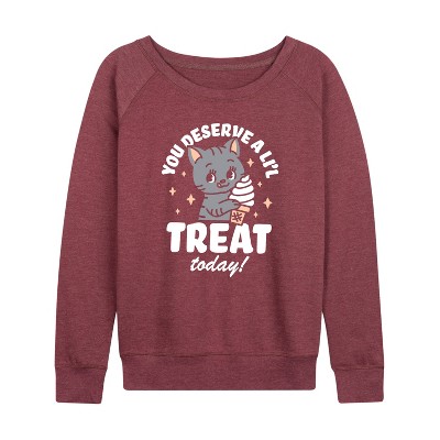Women's Instant Message Just Sayin Lightweight French Terry Wide Neck Long Sleeve Graphic Shirt - Heather Maroon - X-Large