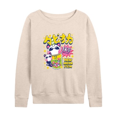 Women's - Instant Message - Kawaii Dog with Strawberry Milk Lightweight French Terry Wide Neck Long Sleeve Graphic Shirt - 1 of 4
