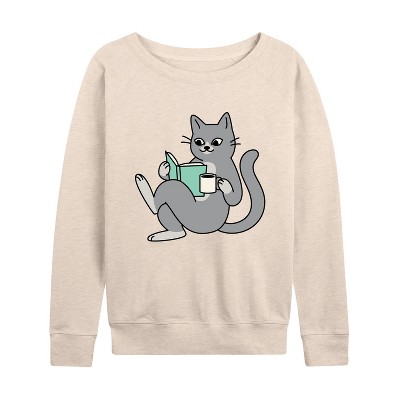 Women's Instant Message Kawaii Lightweight French Terry Wide Neck Long Sleeve Graphic Shirt - Heather Maroon - Small