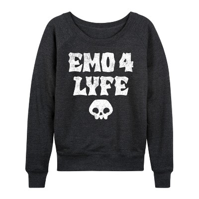 Women's Instant Message Kindness Teaching Lightweight French Terry Wide Neck Long Sleeve Graphic Shirt - Heather Charcoal - Small