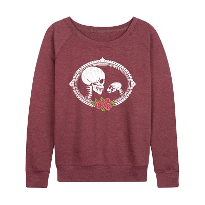 Women's Instant Message Kiss My Lucky Lightweight French Terry Wide Neck Long Sleeve Graphic Shirt - Heather Maroon - 1X