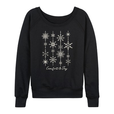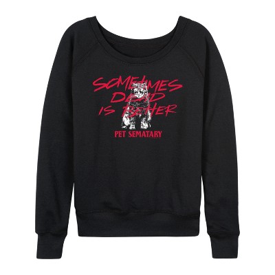 Women's Instant Message Lucky Script Four Leaf Clover Lightweight French Terry Wide Neck Long Sleeve Graphic Shirt - Black - Large