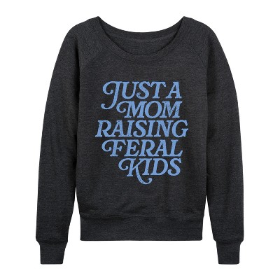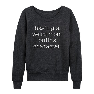 Women's Instant Message Mama Needs Matcha Lightweight French Terry Wide Neck Long Sleeve Graphic Shirt - Heather Charcoal - X-Large