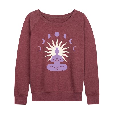 Women's Instant Message Mandala Butterfly Lightweight French Terry Wide Neck Long Sleeve Graphic Shirt - Heather Maroon - Small