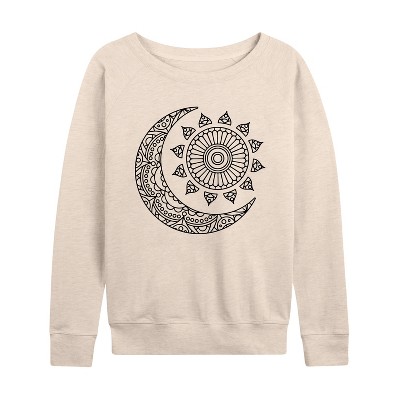 Women's - Instant Message - Mandala Daisy Lightweight French Terry Wide Neck Long Sleeve Graphic Shirt - 1 of 4