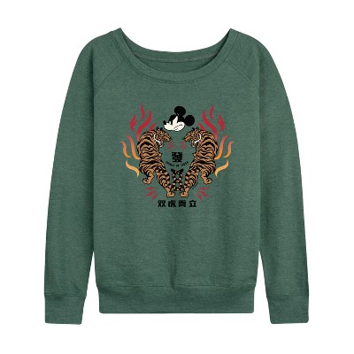 Women's Instant Message Mandala Daisy Lightweight French Terry Wide Neck Long Sleeve Graphic Shirt - Heather Juniper - Small