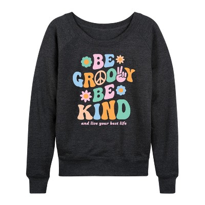 Women's Instant Message Mardi Crown Lightweight French Terry Wide Neck Long Sleeve Graphic Shirt - Heather Charcoal - Medium