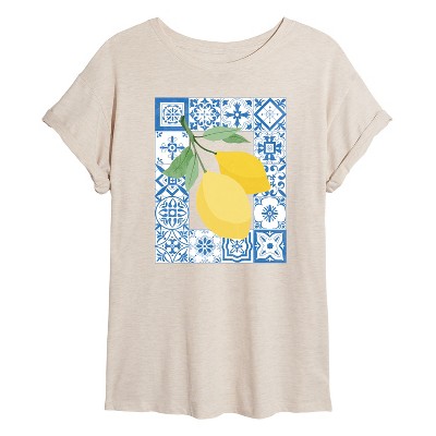 Women's - Instant Message - Mediterranean Lemons Oversized Graphic T-Shirt - 1 of 4