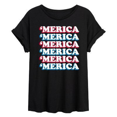 Women's Instant Message 'Merica Stacked Short Sleeve Graphic T-Shirt - Black - Large