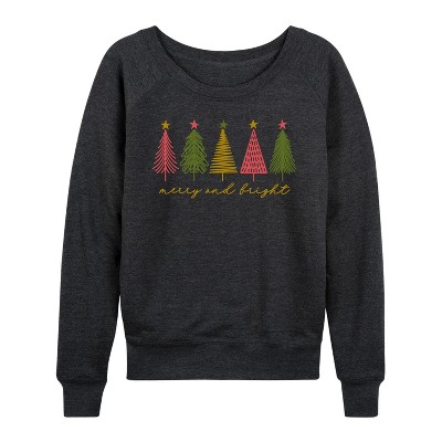 Women's - Instant Message - Merry And Bright Christmas Trees Lightweight French Terry Wide Neck Long Sleeve Graphic Shirt - 1 of 4