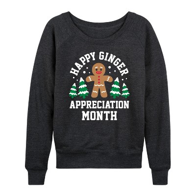 Women's - Instant Message - Merry Krampus Festive Christmas Lightweight French Terry Wide Neck Long Sleeve Graphic Shirt