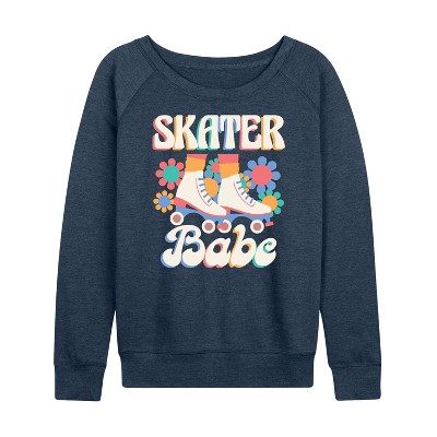 Women's Instant Message Mountain Mama Lightweight French Terry Wide Neck Long Sleeve Graphic Shirt - Heather Indigo - Medium