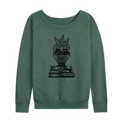 Women's Instant Message Mushroom Celestial Lightweight French Terry Wide Neck Long Sleeve Graphic Shirt - Heather Maroon - Small