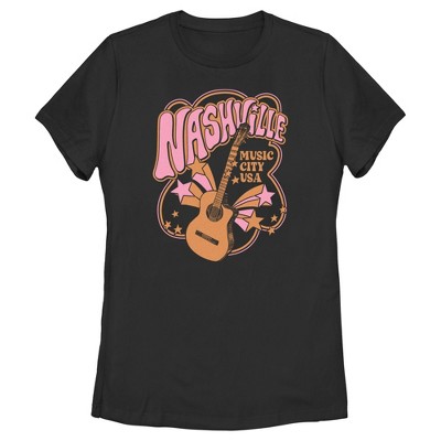 Women's Instant Message Nashville Guitar Short Sleeve Graphic T-Shirt - Burnt Olive - Small