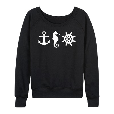 Women's - Instant Message - Nautical Sea Turtle Lightweight French Terry Wide Neck Long Sleeve Graphic Shirt - 1 of 4