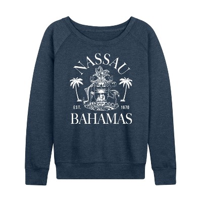 Women's Instant Message Night Forager Lightweight French Terry Wide Neck Long Sleeve Graphic Shirt - Heather Indigo - Large