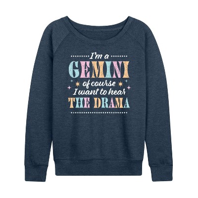 Women's Instant Message Night Shift Life Lightweight French Terry Wide Neck Long Sleeve Graphic Shirt - Heather Indigo - Large