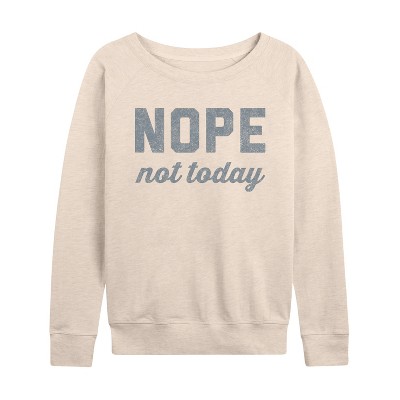 Women's Instant Message Nope. Lightweight French Terry Wide Neck Long Sleeve Graphic Shirt - Heather Charcoal - Small