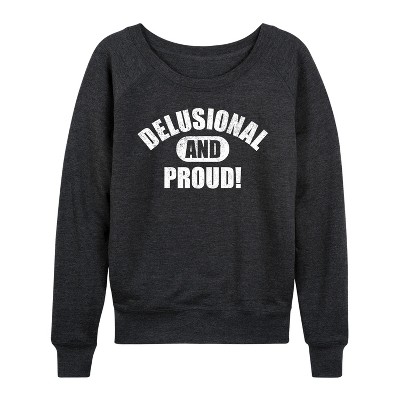 Women's Instant Message Oat Milk Lightweight French Terry Wide Neck Long Sleeve Graphic Shirt - Heather Charcoal - Medium