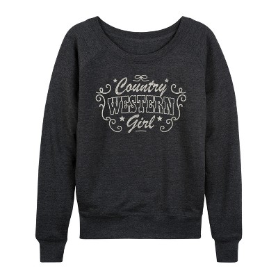 Women's Instant Message Paisley Horse Head Lightweight French Terry Wide Neck Long Sleeve Graphic Shirt - Heather Charcoal - Medium