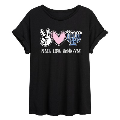 Women's - Instant Message - Peace Love Hanukkah Short Sleeve Graphic T-Shirt