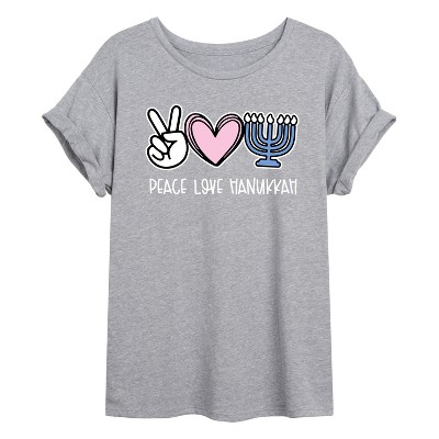 Women's - Instant Message - Peace Love Hanukkah Short Sleeve Graphic T-Shirt