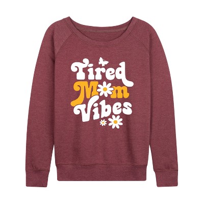 Women's Instant Message Permanently Tired Lightweight French Terry Wide Neck Long Sleeve Graphic Shirt - Heather Maroon - X-Large