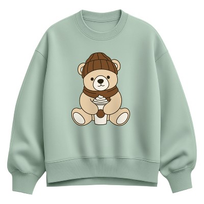 Women's Instant Message Plant Skull Oversized Fleece Crew Sweatshirt - Seafoam - Medium