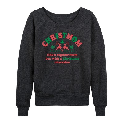 Women's Instant Message Plants In Vase Lightweight French Terry Wide Neck Long Sleeve Graphic Shirt - Heather Charcoal - Medium