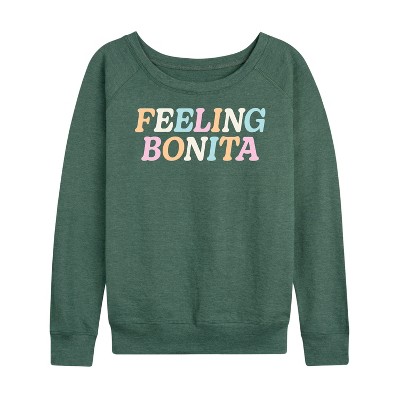 Women's Instant Message Positivity Is Powerful Lightweight French Terry Wide Neck Long Sleeve Graphic Shirt - Heather Charcoal - Small