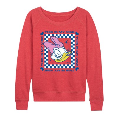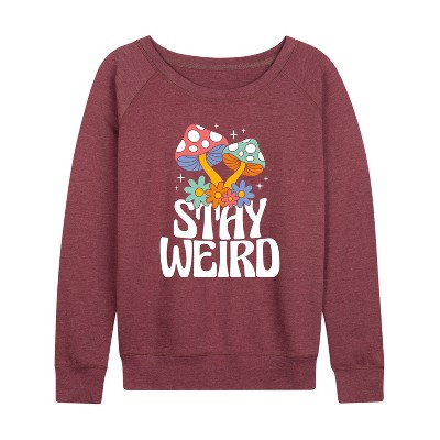 Women's Instant Message Psychedelic Vibes & Mushrooms Lightweight French Terry Wide Neck Long Sleeve Graphic Shirt - Heather Indigo - Small
