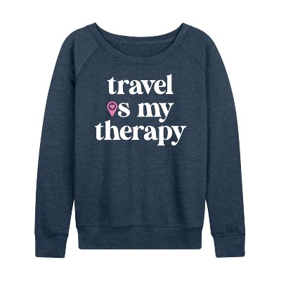 Women's Instant Message Retail Therapy Lightweight French Terry Wide Neck Long Sleeve Graphic Shirt - Heather Indigo - Small