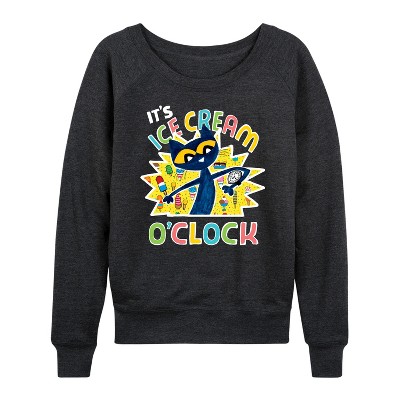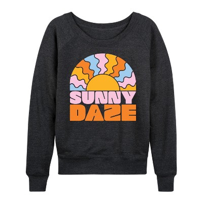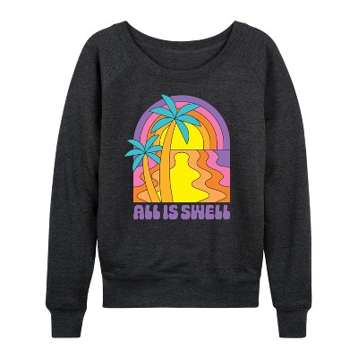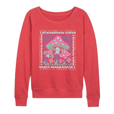 Women's Instant Message Retro Mushrooms Rainbow Lightweight French Terry Wide Neck Long Sleeve Graphic Shirt - Heather Charcoal - Medium