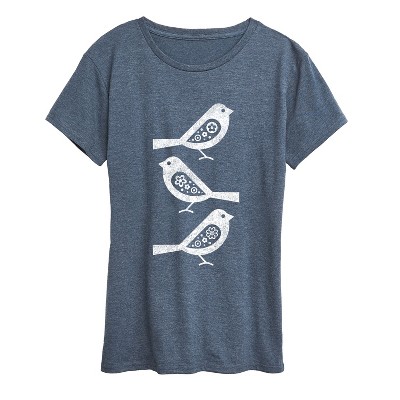 Women's Instant Message Scandinavian Birds Short Sleeve Graphic T-Shirt - Heather Blue - 1X