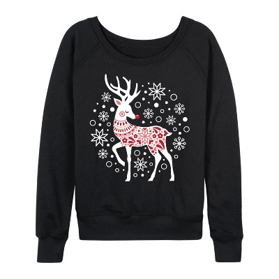 Women's Instant Message Scandinavian Gnome Spring Lightweight French Terry Wide Neck Long Sleeve Graphic Shirt - Black - Small