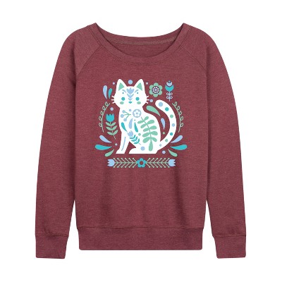Women's Instant Message Scandinavian Winter Deer Lightweight French Terry Wide Neck Long Sleeve Graphic Shirt - Heather Indigo - X-Large