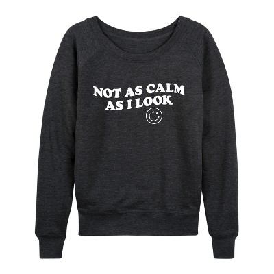 Women's Instant Message Script Teacher With Hearts Lightweight French Terry Wide Neck Long Sleeve Graphic Shirt - Heather Charcoal - Small