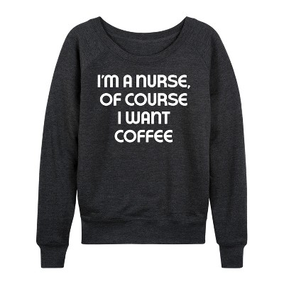 Women's Instant Message She Her Lightweight French Terry Wide Neck Long Sleeve Graphic Shirt - Heather Charcoal - Medium