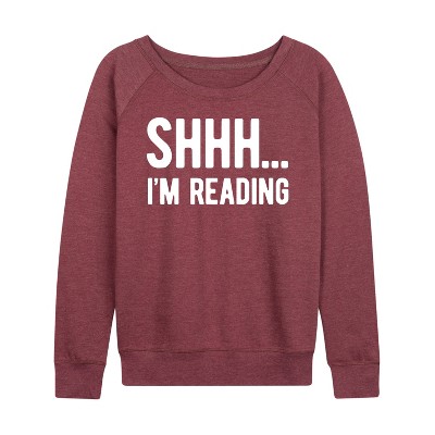 Women's Instant Message Shhh I'm Still Asleep Lightweight French Terry Wide Neck Long Sleeve Graphic Shirt - Heather Maroon - X-Large