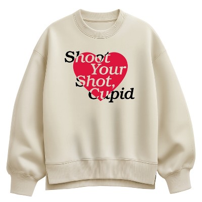 Instant Message - Shoot Your Shot Cupid - Women's Oversized Fleece Crew Sweatshirt - Instant Message is an online specialty fashion retailer for everything from funny to inspiring printed apparel. We offer a range of garments from long sleeve and relaxed fit t-shirts, to lightweight french-terry long sleeve shirts, hoodies and graphic print pullovers. Our products feature fun and trendy graphics that are perfect for any occasion and also make great gifts.