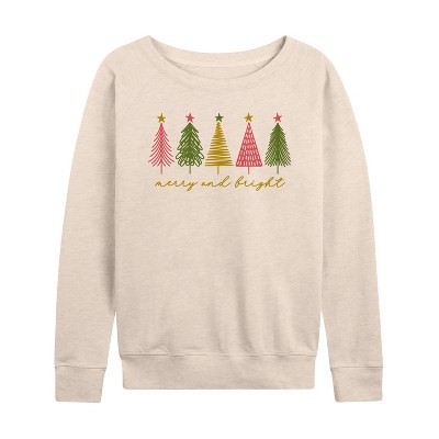 Women's Instant Message Merry And Bright Christmas Trees Short Sleeve Graphic T-Shirt - Black - 4X