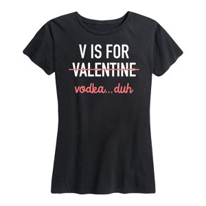 Instant Message - V Is For Vodka - Women's Short Sleeve Graphic T-Shirt - Celebrate the essence of Hybrid Apparel's Instant Message with officially licensed apparel featuring unique designs crafted exclusively by Hybrid Apparel. Each piece brings beloved characters, iconic imagery, and memorable moments to life, offering Instant Message fans a one-of-a-kind way to showcase their passion.