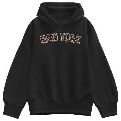 Women's Instant Message Simple Bow Oversized Fleece Hoodie Sweatshirt - Black - Large