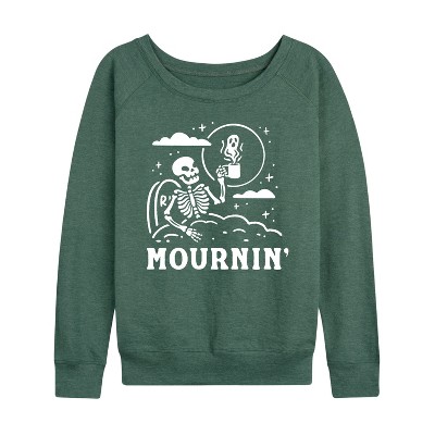 Women's Instant Message Skeleton Guitar Lightweight French Terry Wide Neck Long Sleeve Graphic Shirt - Heather Charcoal - Small